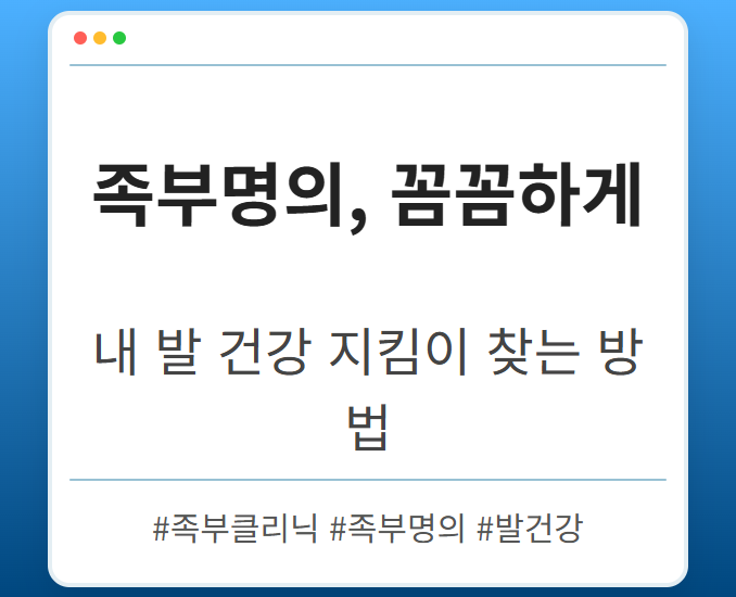 목차 족부클리닉 명의, 왜 중요할까요? 족부 질환 방치, 어떤 결과를 초래할까요? 족부클리닉, 아무 곳이나 가면 안 되는 이유 족부클리닉 명의,