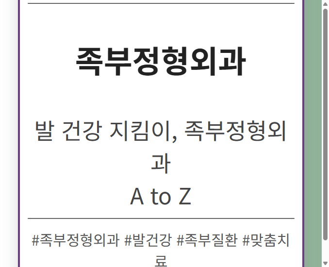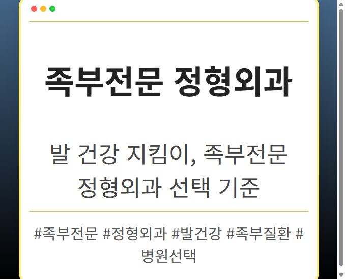 목차 족부전문정형외과, 왜 선택해야 할까요? 족부 질환의심각성 차별화된전문성 맞춤형치료 계획 족부전문정형외과 선택 시 고려 사항 의료진의전문성 확인 병원의시설 및 장비