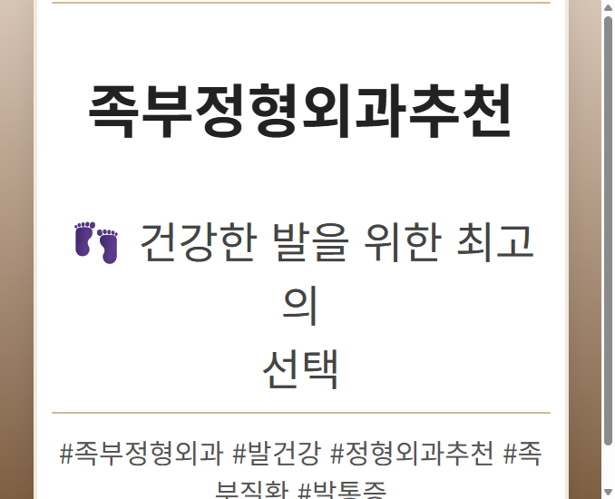 목차 족부정형외과란 무엇일까요? 족부정형외과의 역할 주요 진료 분야 족부 질환의 진단과 치료 방법 정확한 진단 과정 다양한 치료 방법 건강한