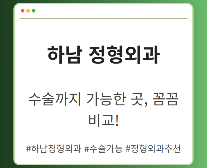 목차 하남에서 수술 가능한 정형외과, 왜 중요할까요? 수술 가능 여부, 초기 진료에 미치는 영향 하남 정형외과 선택 시 고려해야 할