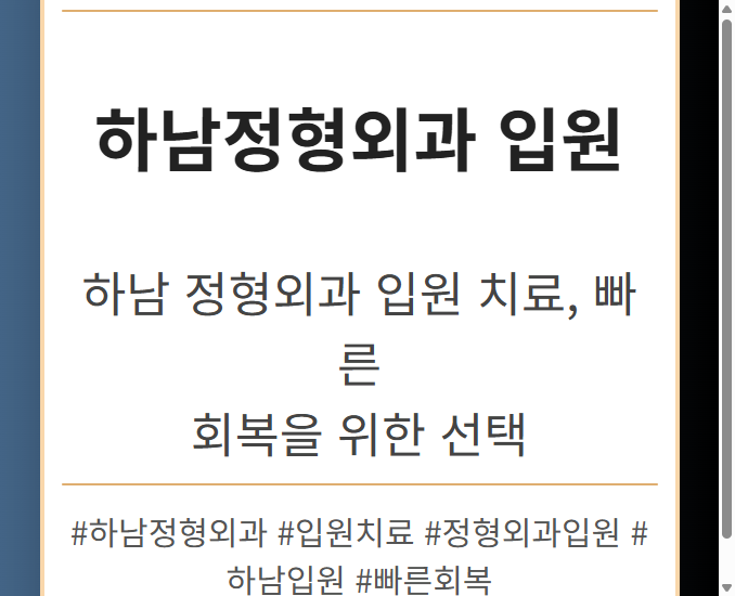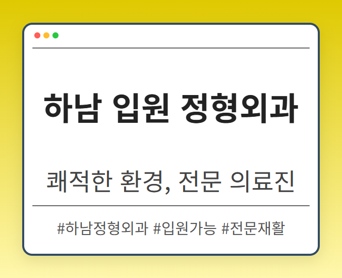 목차 하남 정형외과 입원,왜 선택해야 할까요? 맞춤형 치료 계획 및 프로그램 최첨단 의료 장비와 시설 입원 결정부터 퇴원 후 관리까지