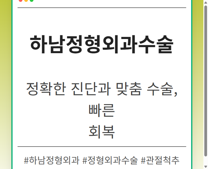 목차 하남정형외과수술, 왜 중요할까요? 정확한 진단이 우선입니다 최적의 수술 방법 선택 수술 후 관리, 어떻게 해야 할까요? 감염 예방 및