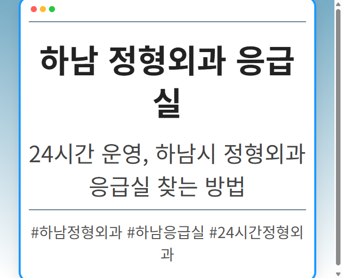 목차 하남시, 24시간 정형외과 응급실이 필요할 때 응급 상황 시 대처 방법 정형외과 전문의가 중요한 이유 하남시 정형외과 응급실 찾는