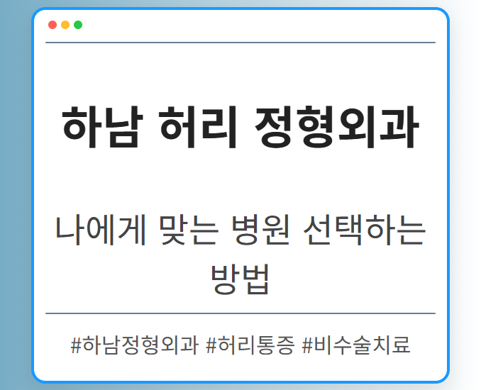 목차 하남 허리 정형외과, 왜 중요할까요? 허리 통증, 방치하면 안 되는 이유 하남 허리 정형외과 선택, 이것만은 꼭 확인하세요! 비수술