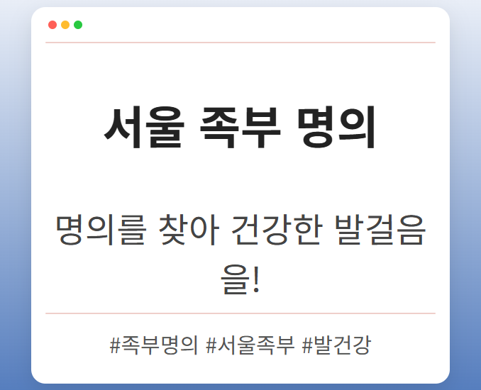 목차 서울 족부정형외과, 왜 명의를 찾아야 할까요? 족부 질환, 방치하면 안 되는 이유 서울 족부정형외과 명의, 무엇이 다를까요? 족부명의, 어떻게