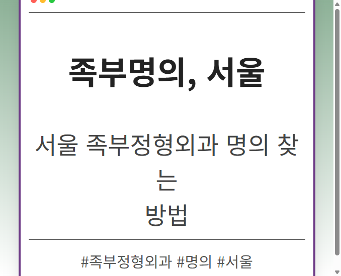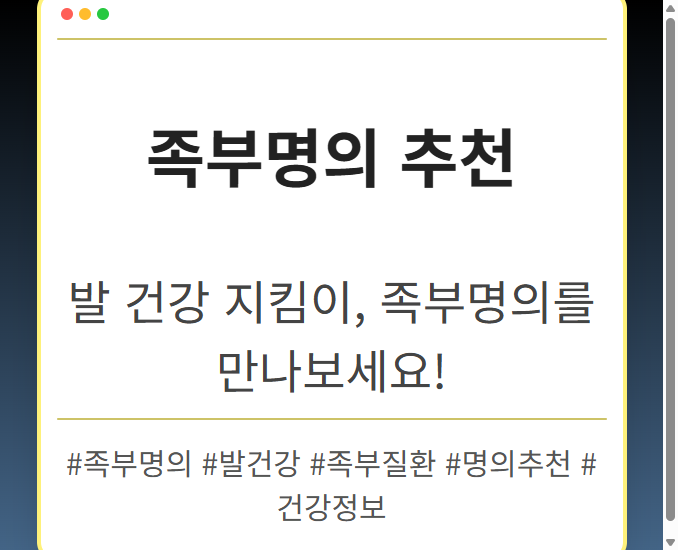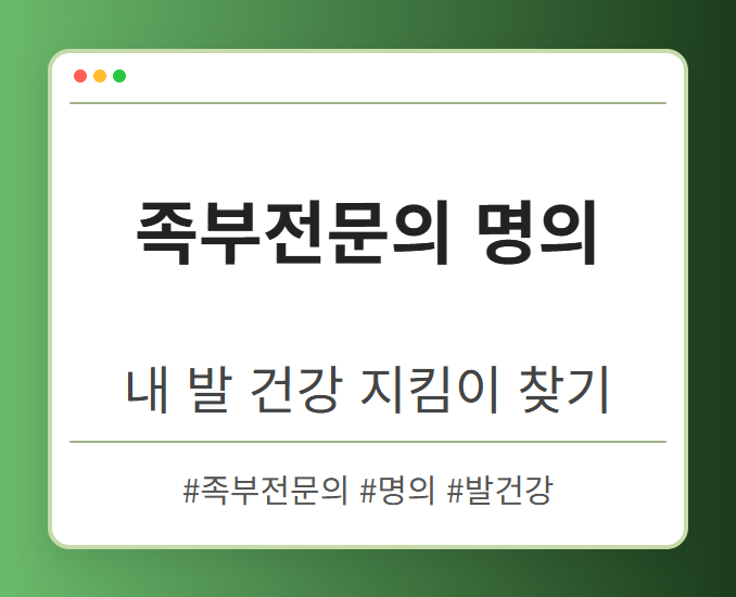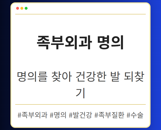 목차 족부외과, 왜 명의를 찾아야 할까? 족부 질환의 다양한 종류 명의 선택의 중요한 기준 나에게 맞는족부외과 명의 찾는 방법 인터넷
