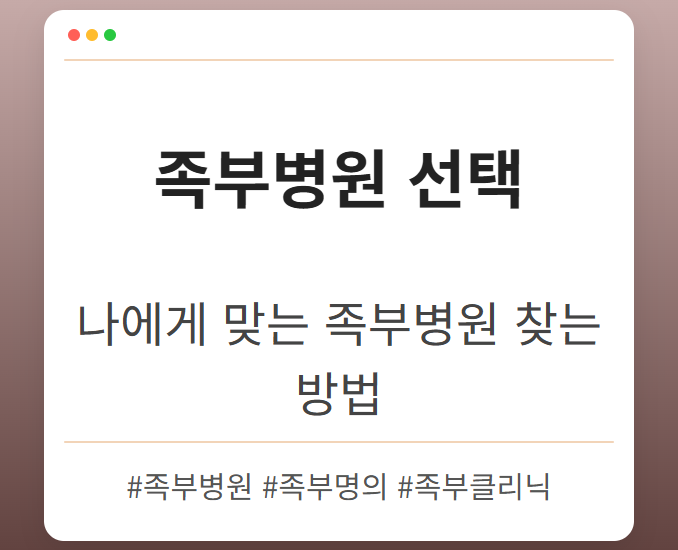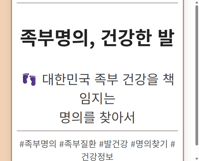 목차 족부 질환, 왜 명의를 찾아야 할까요? 족부 질환의 종류와 증상 명의를 찾아야 하는 이유 나에게 맞는 명의 찾는 방법