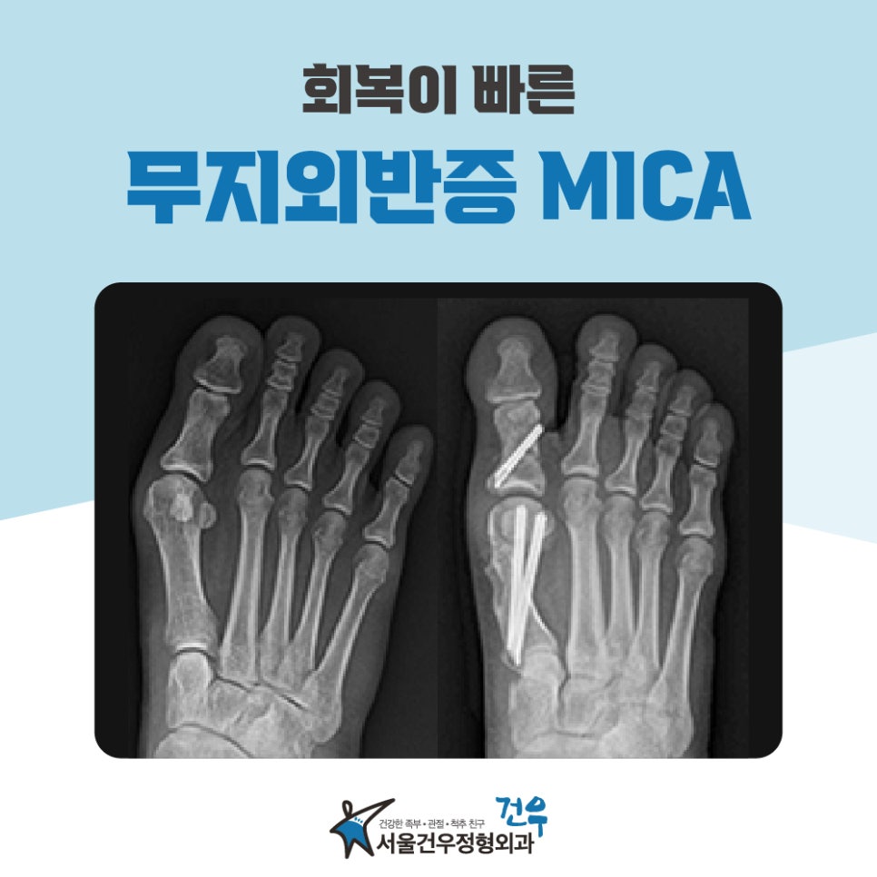 강일역정형외과에서 빠르게 회복하는 무지외반증 MICA수술 무지외반증 MICA수술은 최근 강일역정형외과에서 인기 있는 수술 중 하나입니다. 무지외반증은 발목 부위의 힘줄이나 인대가 손상되어