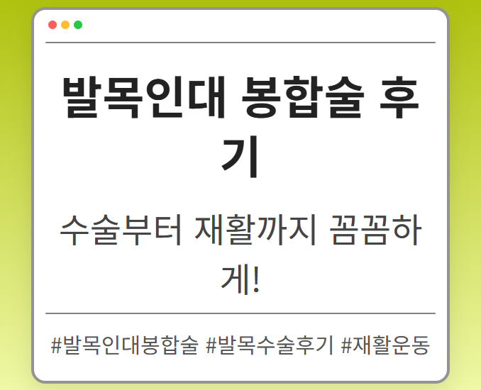 목차 발목인대 봉합술, 왜 선택했을까? 수술 전 꼼꼼한 준비 과정 발목인대 봉합술, 실제 수술 과정은? 수술 후 재활, 어떻게 해야